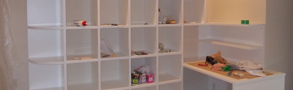 壁面のスペースに収納棚等施工を承りました。